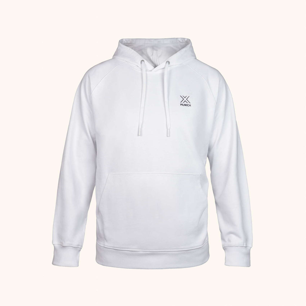 Dessuadora MUNICH sport amb caputxa i butxaca tipus cangur. Feta de cotó 100% amb estampat de logo a la zona de l'escut.
