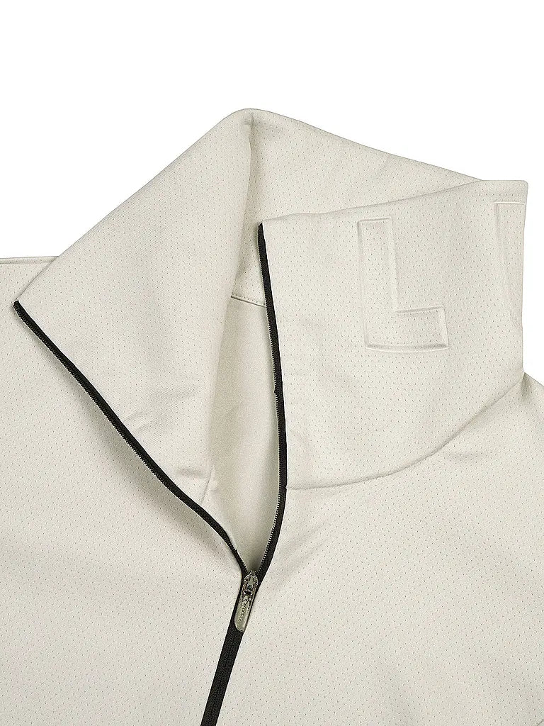 Logotipo de diseño de LUHTA a 3D en el cuello en la parte exterior que cuando subes el cuello se aprecia y hace que la elegancia sea total.