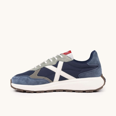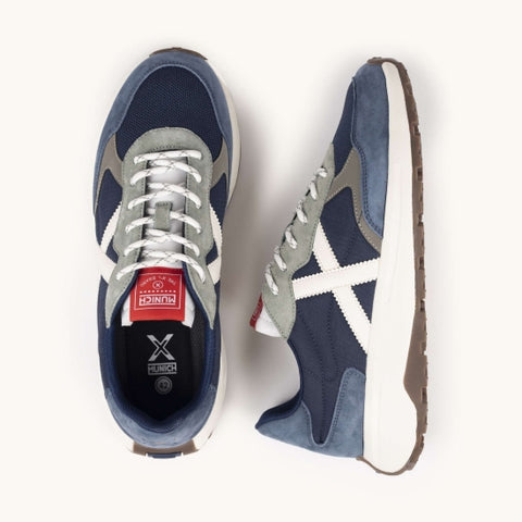Diseñadas para la autenticidad y la expresión personal, la MUNICH BABEL refleja la energía vibrante de la cultura juvenil a través de un diseño atrevido con detalles audaces que te permitirán recorrer las calles con total confianza. Este modelo presenta una combinación de materiales premium que mezcla tejido técnico y ante en tonos azul marino y gris, destacando por su icónica logomarca en blanco y una lengüeta con detalles en rojo que rompe la sobriedad del conjunto. Es el calzado perfecto para quienes buscan destacar en eventos creativos o en su rutina diaria, aportando una estética contemporánea y una pisada confortable gracias a su suela de gran volumen y agarre optimizado.