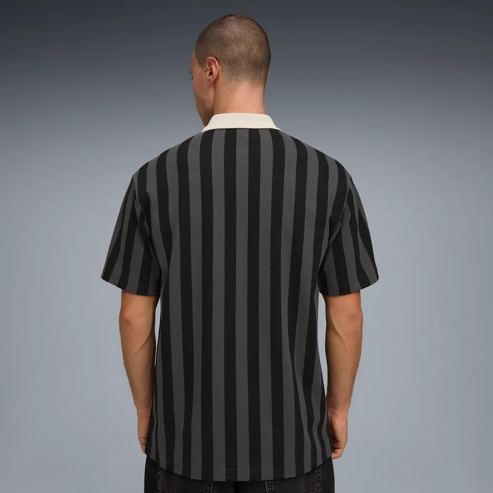 El polo Puma 692069 para hombre destaca por su diseño inspirado en la estética deportiva clásica, con rayas verticales en tonos gris y negro que aportan un look moderno y sofisticado.