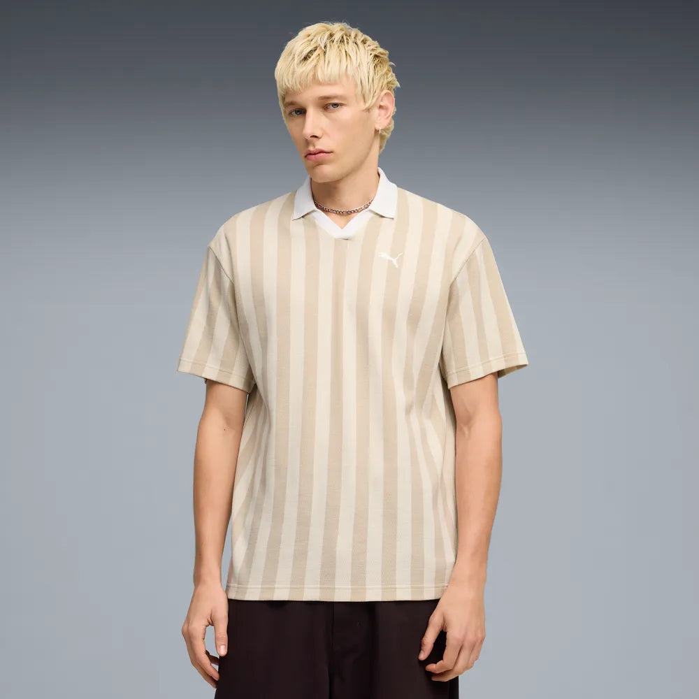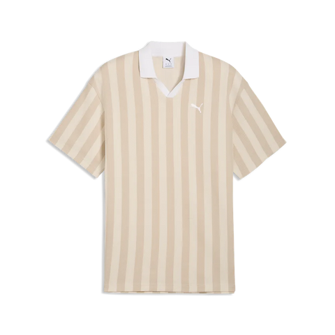 El polo Puma 692069 para hombre destaca por su diseño inspirado en la estética deportiva clásica, con rayas verticales en tonos beige que aportan un look moderno y sofisticado.